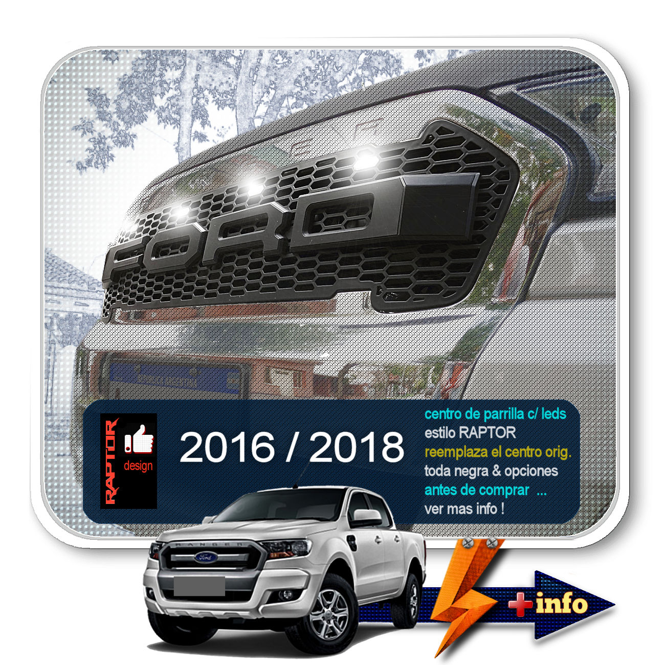 PARRILLA RAPTOR (CENTRO) 2016 - 2018 CON LEDS cantidad